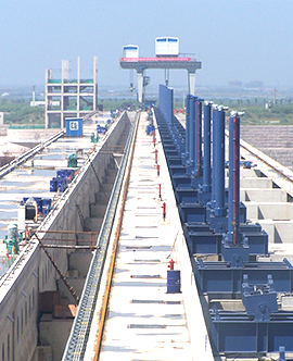 公司專業(yè)生產(chǎn)的各類平面、弧型閘門,各類卷揚、門式、移動式啟閉機,各類清污機、攔污柵、升船機、壓力鋼管、錐形閥等超大型、大型水工金屬結構件和各類起重機遠銷全國26個省、市、自治區(qū),并出口到16個國家和地區(qū),廣泛應用于全國重點工程建設,如長江三峽永久性船閘工程、淮河蚌埠閘擴建工程、浙江溫州珊溪水利樞紐工程、四川岷江紫坪鋪水利樞紐工程、浙江省分水江水利樞紐工程、中國河口第一大閘曹娥江攔河大閘和港口、船舶制造企業(yè)等。